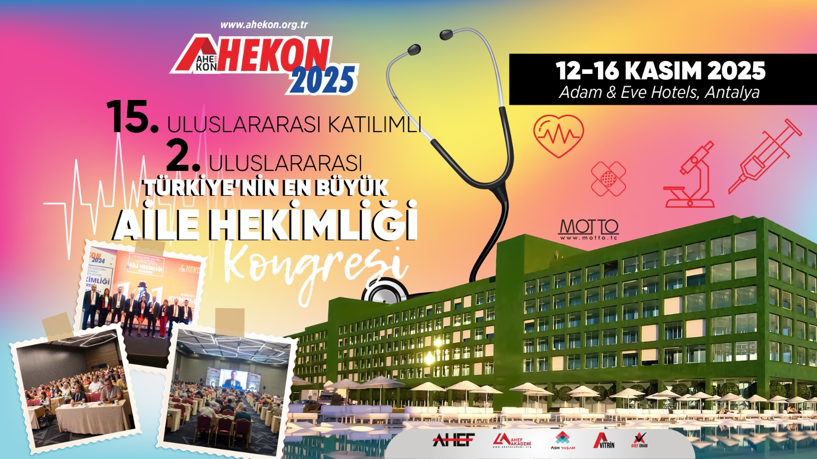 12-16 Kasım 2025 tarihleri arasında Antalya Adam & Eve Hotels'de düzenlenecek olan AHEKON 2025 etkinliğine davetlisiniz.